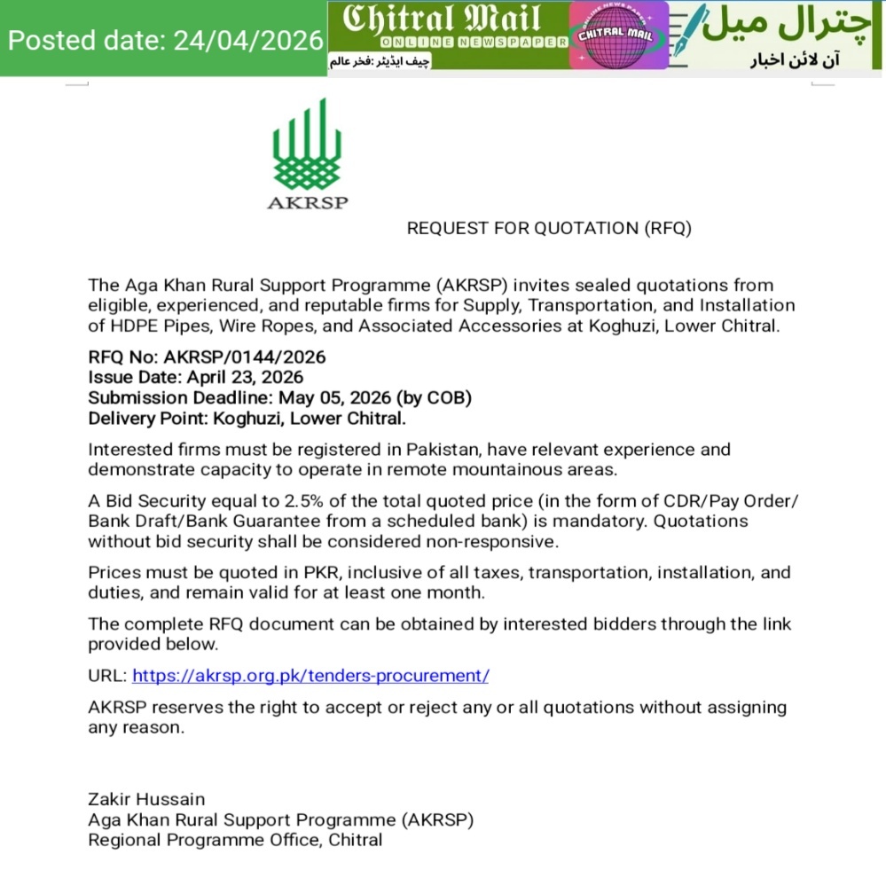 . ضلع چترال اپنی دلکش وادیوں، ثقافتی ورثے اور بین الاقوامی سیاحت کے باعث ایک منفرد حیثیت رکھتا ہے، مگر بدقسمتی سے یہاں بنیادی مالیاتی سہولیات، خصوصاً منی ایکسچینج (زرِ مبادلہ کی تبدیلی) کا شدید