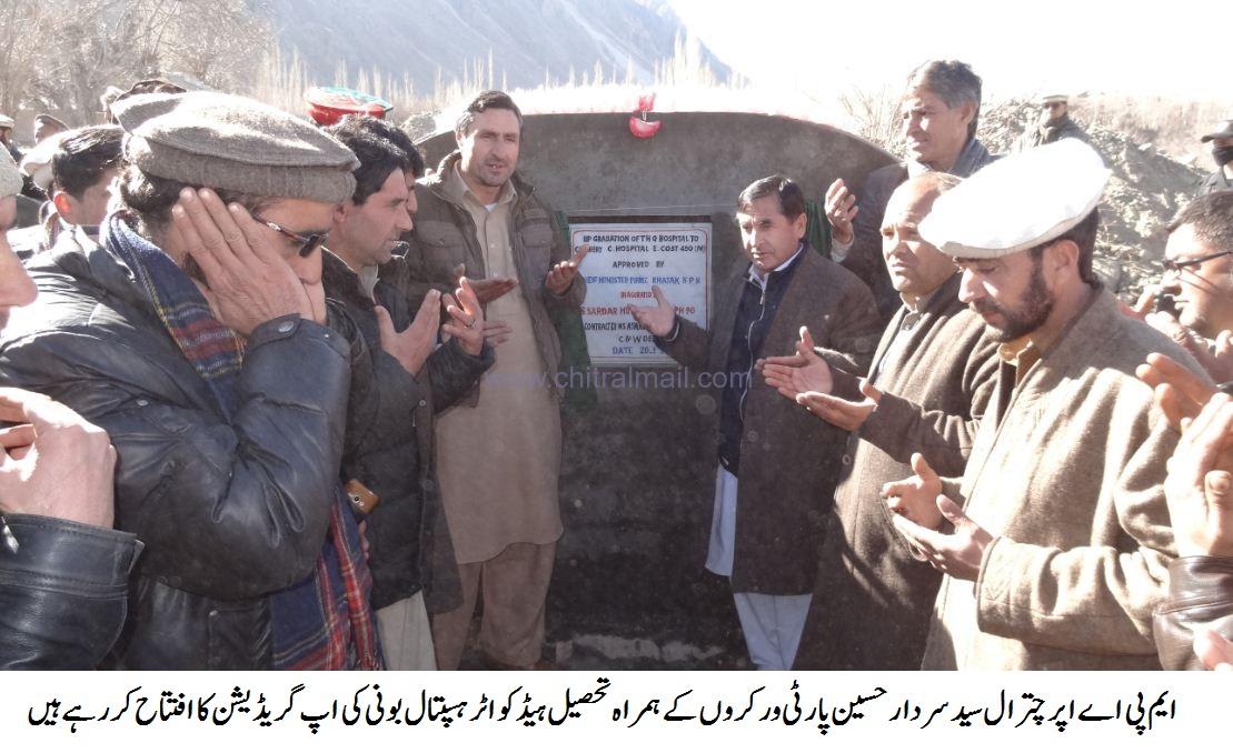 چترال(نما یندہ چترال میل)رکن صوبائی اسمبلی سیدسردارحسین شاہ نے تحصیل ہیڈ کوارٹر ہسپتا ل بونی کے توسیعی منصوبے کی افتتاحی تقریب سے خطاب کرتے ہوئے کہا کہ زیرتعمیرعمارت مکمل ہونے کے بعد ہسپتال میں جدید مشینری،طبی آلات،جدید آپریشن تھیٹر،آرتھوپیڈک اورگائنی کے شعبے قائم کیے جائیں گے جہاں تحصیل مستوج اورملحقہ علاقوں کے لوگوں کو علاج معالجہ کی جدید اورمعیاری سہولتیں میسر آئیں گی اوریہ ہسپتال دکھی انسانیت کیلئے ایک مسیحا کا کردارادا کرے گا۔انہوں نے کہاکہ ملک کی 70سالہ تاریخ کا پہلا موقع ہے کہ سرکاری ہسپتالوں میں غریب مریضوں کو وہی ادویات مفت مل رہی ہیں جو اشرافیہ استعمال کرتی ہے اورہسپتالوں میں معیاری ادویات کی فراہمی پر اربوں روپے خرچ کیے جارہے ہیں۔انہوں نے کہاکہ صوبائی حکومت تحصیل ہیڈ کوارٹر ہسپتا ل بونی کوجدید طرز پر استوارکرنے اوراپ گریڈیشن کیلئے 450ملین روپے کے فنڈز جاری کردئیے گئے ہیں جس کے لئے اپرچترال کی عوام وزیراعلیٰ خیبرپختونخوا پرویزخٹک کے مشکورہیں جنہوں نے چترال کے پسماندگی اوردورافتادگی کوپیش نظررکھے کرکئی میگاپراجیکٹ پرکام شروع کرویاہے۔انہوں نے کہاکہ میں صوبائی حکومت کامشکورہوں جس کام کے حوالے سے میں نے درخواست کی تھی جس کویقینی بنانے میں اُنہوں نے اہم کرداراداکی ہے میں حزب اختلاف میں ہونے کے باوجودیہاں کے پسماندگی کومدنظررکھتے ہوئے میرے ہرمطالبے کوعملی جامہ پہنایاہے۔ ساڑھے چارسال میں صوبائی حکومت نے چترال کے کئی ہسپتالوں میں سولرسسٹم لگوائے ہیں اورفی سولرسسٹم کی قیمت 7 لاکھ 50ہزارروپے ہے۔جس میں اپرچترال کے بی ایچ یونشکو،آرایس سی دراسن،پی ایچ یواویر،ٹی اایچ کیوبونی اوربی ایچ یو کوشٹ شامل ہیں اور مزیدہسپتالوں کے لئے بھی سولر سسٹم دیے جائینگے۔انہوں نے کہاکہ 19ڈسپنسریزکی منظوری بھی دی گئی ہے جوپیپلزورکس پروگرام کی ڈسپنسریاں تعطل کاشکارتھے جن کے لئے اسٹاف بھی دیاگیاہے۔انہوں نے کہاکہ اپرچترال میں تمام جاری ترقیاتی منصوبوں میں غیرضروری تاخیر کا نوٹس لیتے ہوئے ہدایات جاری کی ہیں کہ منصوبوں کی بروقت تکمیل کو یقینی بناتے ہوئے معیار کو بھی مدنظر رکھا جائے۔ا س موقع پرپاکستان تحریک انصاف کے پانچ چھ ورکروں وہاں آکرافتتاح کوناکام بنانے کی کوشش کی جس پرایم پی اے سردارحسین نے ان کوسمجھایاکہ علاقے میں ہرکام متعلقہ ایم پی اے مطالبے پراے ڈی پی میں شامل کیاجاتاہے اورہم وزیراعلیٰ کے مشکورہے کہ جن کے حکم پر ترقیاتی منصوبے دے جاتے ہیں چاہیے حزب اختلاف میں ہویاحزب اقتدارمیں وہ پارلیمنٹ کاحصہ ہوتاہے۔پارلیمنٹ کے قانون کے تحت چلتے ہیں ان ترقیاتی منصوبوں کے حوالے سے میں بھی صوبائی حکومت کوخراج تحسین پیش کرتاہوں۔جس کے بعدسب نے مل کرتختی کی نقاب کشائی کرکے نئی بنے والی تحصیل ہیڈکواٹرہسپتال بونی کاباقاعدہ افتتاح کیا۔ا س موقع پر پاکستان پیپلزپارٹی اپرچترال کے صدرامیراللہ،انفارمیشن سیکرٹری پرویزلال،مختارسنگین لال،رحمت سلام لال،وی سی ناظم بونی کرامت،ظفراللہ پروازاوردیگر جیالوں نے ایم پی اے سردارحسین کی کارکردگی اورعوامی خدمات کوخراج تحسین پیش کیا۔ایم پی اے نے محکمہ سی اینڈڈبلیوکے ایکسین انجینئرمقبول اعظم،سب انجینئر سب ڈویژن مستوج انجینئرسید ابراہم شاہ اورٹھیکہ دارآسمارخان کی کارکرداگی کوتسلی بخش قراردیتے ہوئے کہاکہ فرشتہ صفت انسان ہیں اورانکی پوری ٹیم درددل رکھتی ہے جو ایمانداری،اخلاص اوربغیر کسی لالچ کے دکھی انسانیت کی خدمت میں مصروف ہے۔میری دعا ہے کہ اللہ تعالیٰ اسے دن رات ترقی دے اوریہ اور زیادہ بہتر انداز میں انسانیت کی خدمت کرے۔