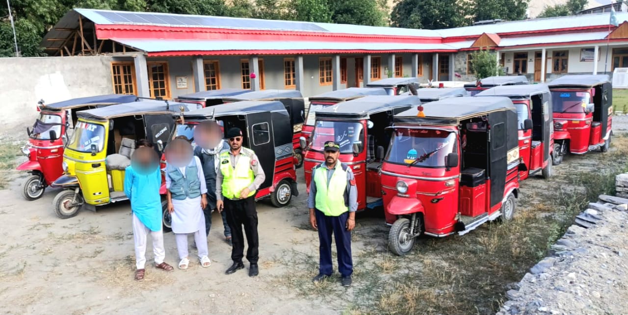 ٹریفک وارڈن پولیس لوئر چترال نے کاروائی کرتے ہوئے بغیر رجسٹریشن، بغیر لائسنس، تیز رفتار اور ٹریفک قوانین کی خلاف ورزی کرنے والے رکشوں کو پولیس سہولت مرکز زرگراندہ میں لاکر کھڑا کیا۔