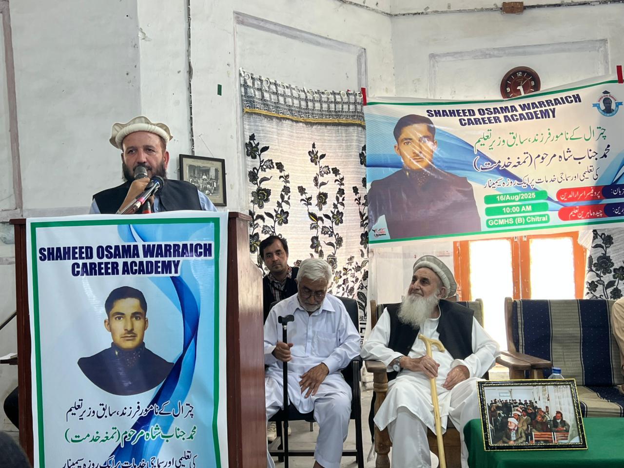 پشاور یونیورسٹی کے شعبہ جعرافیہ کے سابق چیرمین پروفیسر اسرار الدین کی میزبانی اور شہید اسامہ وڑائچ کیئیریر اکیڈیمی کی تعاون سے منعقدہ اس سیمینار میں چترال کے معروف ماہر تعلیم کی زندگی کی مختلف گوشوں پر تفصیل سے روشنی ڈالی گئی اور ان کی سماجی خدمات کو اجاگر کرتے ہوئے کہاگیاکہ انہوں نے چترالی قوم کے لئے اپنی زندگی وقف کررکھی تھی اور 90سال کی پیرانہ سالی میں بھی انہوں نے سماجی خدمات کا سلسلہ جاری رکھا۔ سیمینار سے خطاب کرنے والوں میں پروفیسر اسرارالدین کے علاوہ پروفیسر ڈاکٹر عنایت اللہ فیضی، معروف ماہر تعلیم مکرم شاہ، نادر عزیز قریشی، ظہور الحق دانش، محمد افضل خان، عبدالباری، شاہی خطیب مولانا خلیق الزمان، فدالرحمن اور نظار ولی شاہ شامل تھے جبکہ میرعجم صدر محفل اور ڈی ای او لویر چترال محمود غزنوی مہمان خصوصی تھے۔