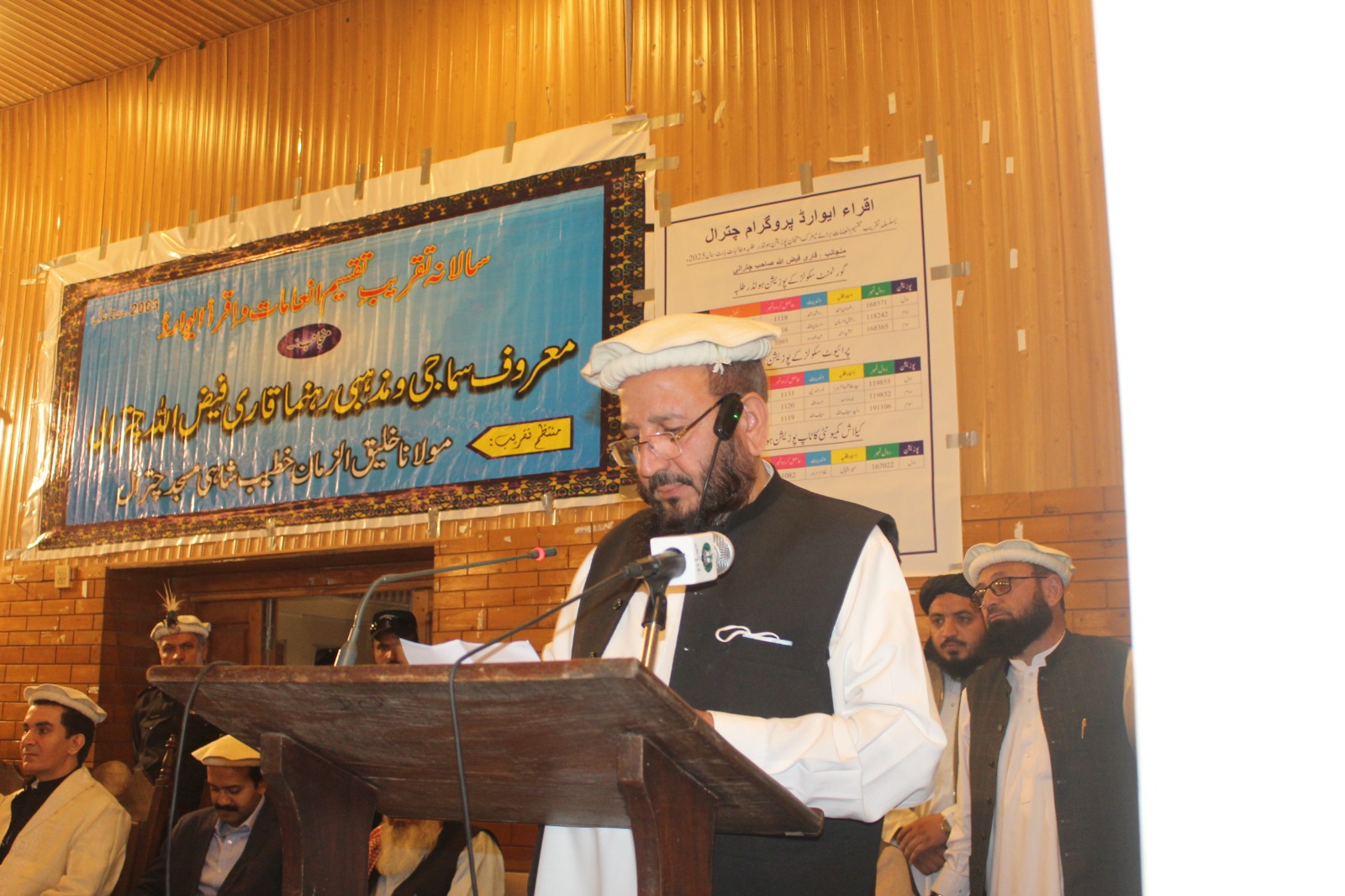 قاری فیض اللہ چترالی کو پا کستان میں با نی انعا مات کہا جا ئے تو بے جا نہ ہو گا انہوں نے 2003میں اپنے آبائی ضلع چترال سے میٹر ک کے سالا نہ امتحا ن میں اول، دوم اور سوم پو زیشن حا صل کرنے والے طلبہ کے لئے اقراء ایوارڈ کے نا م سے نقد انعا مات کا اجرا ء کیا 23سالوں سے یہ انعا مات ہر سال بلا تعطل دیئے جا رہے ہیں اب اس کی تقلید میں دوسرے لو گ بھی مختلف درجوں میں طلبہ کو انعا مات دے رہے ہیں گویا معاشرے کے با اثر طبقے میں اس کوشش کو مقبو لیت، پذیرائی اور قابل تقلید ہونے کی سند مل چکی ہے ٹاون ہا ل میں قاری فیض اللہ چترالی کی طرف سے اقراء تعلیمی ایوارڈ کی تئیسویں تقریب میں خیبر پختونخوا حکومت کے سکرٹری ابتدائی و ثانوی تعلیم محمد خا لد، ملا کنڈ ڈویژن کے کمشنر محمد عابد وزیر، اور لوئیر چترال کے ڈپٹی کمشنر راؤ ہا شم عظیم نے شر کت کی اور انعا مات تقسیم کئے، تقریب میں علمائے کرام، تعلیمی اداروں کے سر براہاں، اساتذہ اور طلبہ کے ساتھ شہر کے معززین کی بڑی تعداد مو جو د تھی قاری فیض اللہ چترالی کے رابطہ کار مو لانا خلیق الزمان خطیب شاہی مسجد چترا ل نے سپا سنا مہ پیش کیا انہوں نے اقراء تعلیمی ایوارڈ کا پس منظر بیاں کر تے ہوئے حا ضرین کو یا د دلا یا کہ مشہور عالم دین مدرسہ اما م محمد کرا چی کے مہتمم اور مخیر شخصیت قاری فیض اللہ چترالی نے چترال میں عصری تعلیم کے فروغ اور سکولوں کے اندر بہتر تعلیم و تر بیت کی تر غیب دینے کے لئے 2003ء میں اقراء ایوارڈ کے نا م سے ضلع کے اندر سر کاری اور پرائیویٹ سکولوں سے میٹرک کے بورڈ امتحا ن میں اول، دوم اور سوم آنے والے قابل نو نہا لوں کے لئے الگ الگ در جہ بندی کے ذریعے 50ہزار، 40ہزار اور 30ہزار روپے کے نقد انعا مات کے ساتھ شیلڈ دینے کا سلسلہ جا ری کیا کا لا ش اقلیت کے لئے الگ انعام رکھا، بورڈ میں پو زیشن لینے والے سکولوں کے سر براہوں کے لئے خصوصی شیلڈ رکھا جو اقراء نشان کہلا تا ہے، انہوں نے کہا کہ گذشتہ 23سالوں سے یہ سلسلہ بلا تعطل جا ری ہے اپنی تقریر میں کمشنر ملا کنڈ عابد وزیر نے کہا کہ چترال کو پورے ملک میں قاری فیض اللہ چترالی جیسی شخصیات، مثا لی شرح تعلیم اور مثا لی امن و امان کی وجہ سے یا د کیا جا تا ہے تعلیم یا فتہ اور مہذب معا شرہ چترال کی پہچان ہے انہوں نے طلبہ کو نصیحت کی کہ امتحا نات میں اعلیٰ نمبروں کے ساتھ پوزیشن بھی حا صل کریں،ا پنے اندر عملی زند گی میں کام آنے والی صلا حیتیں بھی پیدا کریں، اپنے کنبے، محلے اور ملک بھر کو نیک نا می کما کر دیں تا کہ معا شرہ تمہا رے کردار پر فخر کرے، ممتاز عالم دین عالمی مجلس تحفظ ختم نبوت کے مقا می امیرمو لا نا حسین احمد اور ڈاکٹر عنا یت اللہ فیضی نے اپنی تقریروں میں اقراء تعلیمی ایوارڈ کو عصری تعلیم کے فروغ میں علما ء کے مثبت اور تعمیری کر دار کا آئینہ دار قرار دیا مقررین نے کہا کہ قاری فیض اللہ چترالی کے اخلاص کا یہ حا ل ہے کہ 23سالوں میں ایک بار بھی انہوں نے سٹیج پر آکر انعا مات تقسیم کرنے اور تقریر کرنے کی درخواست قبول نہیں کی، پس پر دہ رہ کر تعلیمی نظام میں تر غیب، صحت مند مسا بقے اور مثبت مقا بلے کے ذریعے نئی نسل میں محنت اور قابلیت کے جوہر اجا گر کرنے کو تر جیح دی، ان کی اس تر غیب کا نتیجہ ہے کہ تین دہا ئیاں پہلے 70فیصد نمبر والے کوا ول در جہ قرار دیا جا تا تھا آج کل اول پوزیشن حا صل کرنے والے 90اور 92فیصد نمبر حا صل کر تے ہیں اقراء ایوارڈ لینے والے طلبہ نے پا ک فوج اور سول انتظا میہ میں بھی اعلیٰ عہدے حا صل کئیے ان میں سے بیشتر نے میڈیکل اور انجینئر نگ کے شعبوں میں نما یاں خد مات انجام دیں 2003میں قاری فیض اللہ چترالی نے اکیلے یہ کار نا مہ سر انجا م دیا تھا اب ان کی تقلید میں چترال کے کئی فرزند وں نے طلبہ کی حو صلہ افزائی کا بیڑہ اٹھا یا ہے مقررین نے ہدا یت اللہ، نور الدین جلا ل، عدنا ن زین اور عبد الولی خان عابد کی مثا لیں دیں جنہوں نے قاری فیض اللہ چترالی کی تقلید کا بیڑہ اٹھا یا مقررین نے اس موقع پر انسا نیت کی فلا ح و بہبود، مریضوں کی مدد، آفت زدہ لو گوں کے ساتھ تعاون اور سم