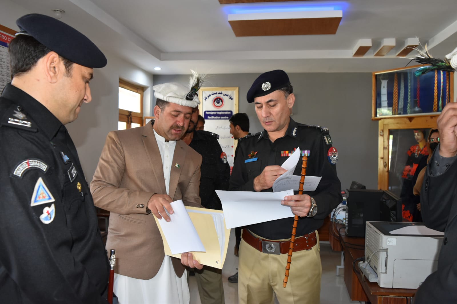 ڈسٹرکٹ پولیس آفیسر لوئر چترال، رفعت اللہ خان، ایس۔پی انوسٹی گیشن اقبال کریم، ڈی۔ایس۔پی ہیڈکوارٹر اقبال الدین سمیت دیگر سینئر پولیس افسران نے معزز مہمان کا استقبال کیا اور انہیں خوش آمدید کہا۔